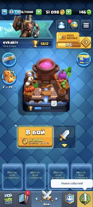 🃏Карты: 104/107; ⚡Легендарные карты: 18/18; 🏆Кубки: 5813;