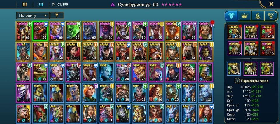 ⚡Уровень: 53 🔥Количество героев:: 61 💪Сила: 235к