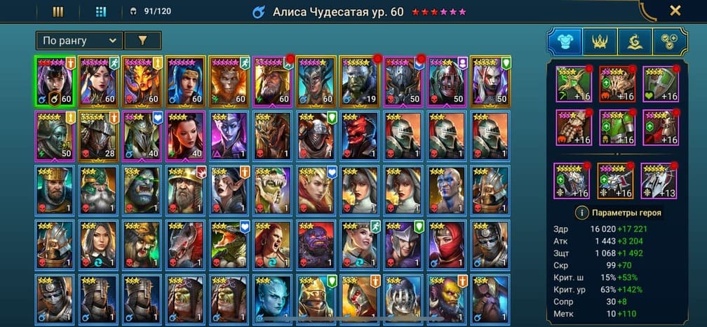 ⚡Уровень: 91 🔥Количество героев:: 410 💪Сила: 850к