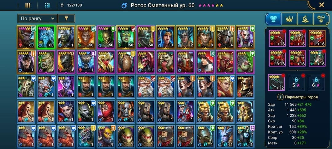 ⚡Уровень: 22 🔥Количество героев:: 140 💪Сила: 750к
