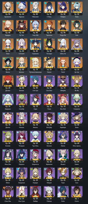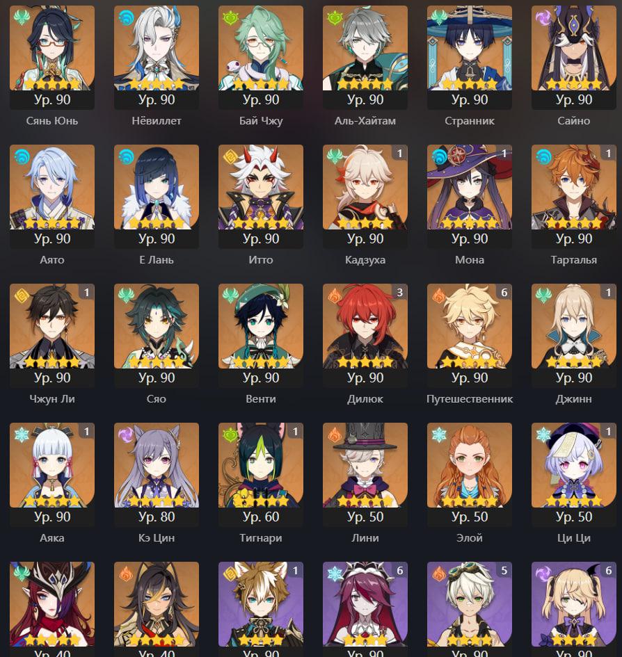 📈 Ранг: 60 🧍♀️ Персонажи: Е Лань, Ху Тао, Джинн и другие 🦾 Оружие: 5 звезд ✨ Примогемы: 340